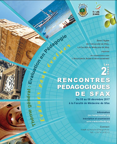 Après une première édition (RPS’1) qui a eu lieu les 7 et 8 octobre 2015 à la faculté de médecine de l’université de Sfax sous l’enseigne des "Nouvelles tendances en pédagogie universitaire" et qui a rassemblé plus que 150 participants de divers horizons, vous êtes invités à la 2ème édition de ces rencontres (RPS’2) qui auront lieu du 5 au 8 décembre 2017 au siège de la faculté. Cette 2ème édition, comme annoncée à la clôture de la première, sera dédiée à "l’évaluation en pédagogie".